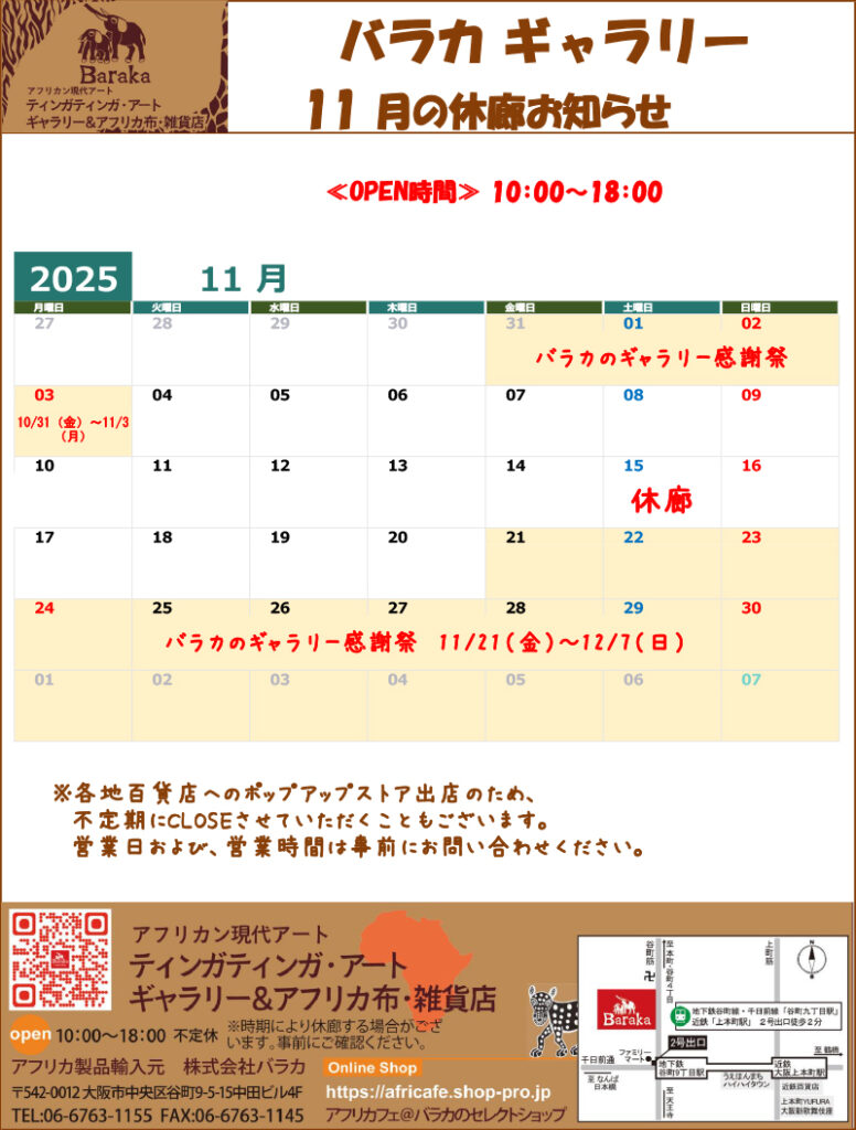 いつもバラカのギャラリー&ショップをご愛顧頂き誠に有り難うございます。