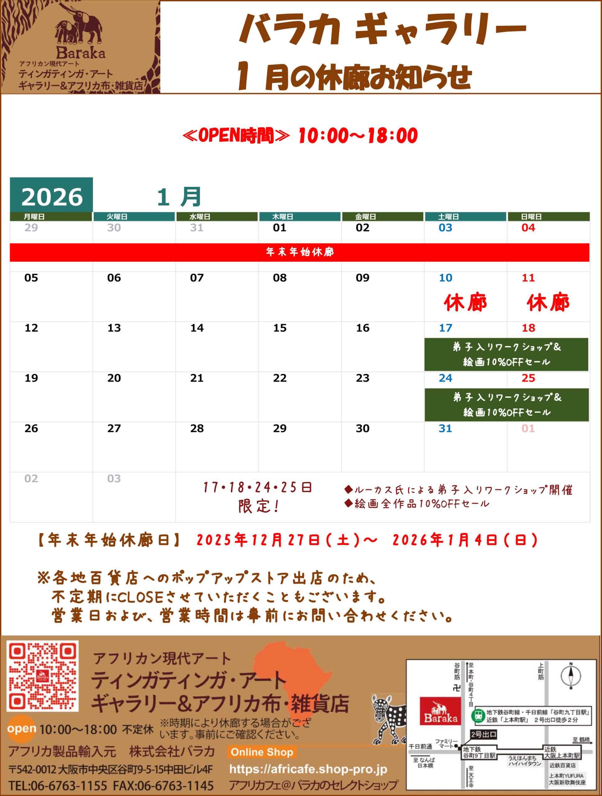 【年末年始休廊日】 2025年12月27日(土)~2026年1月4日(日)