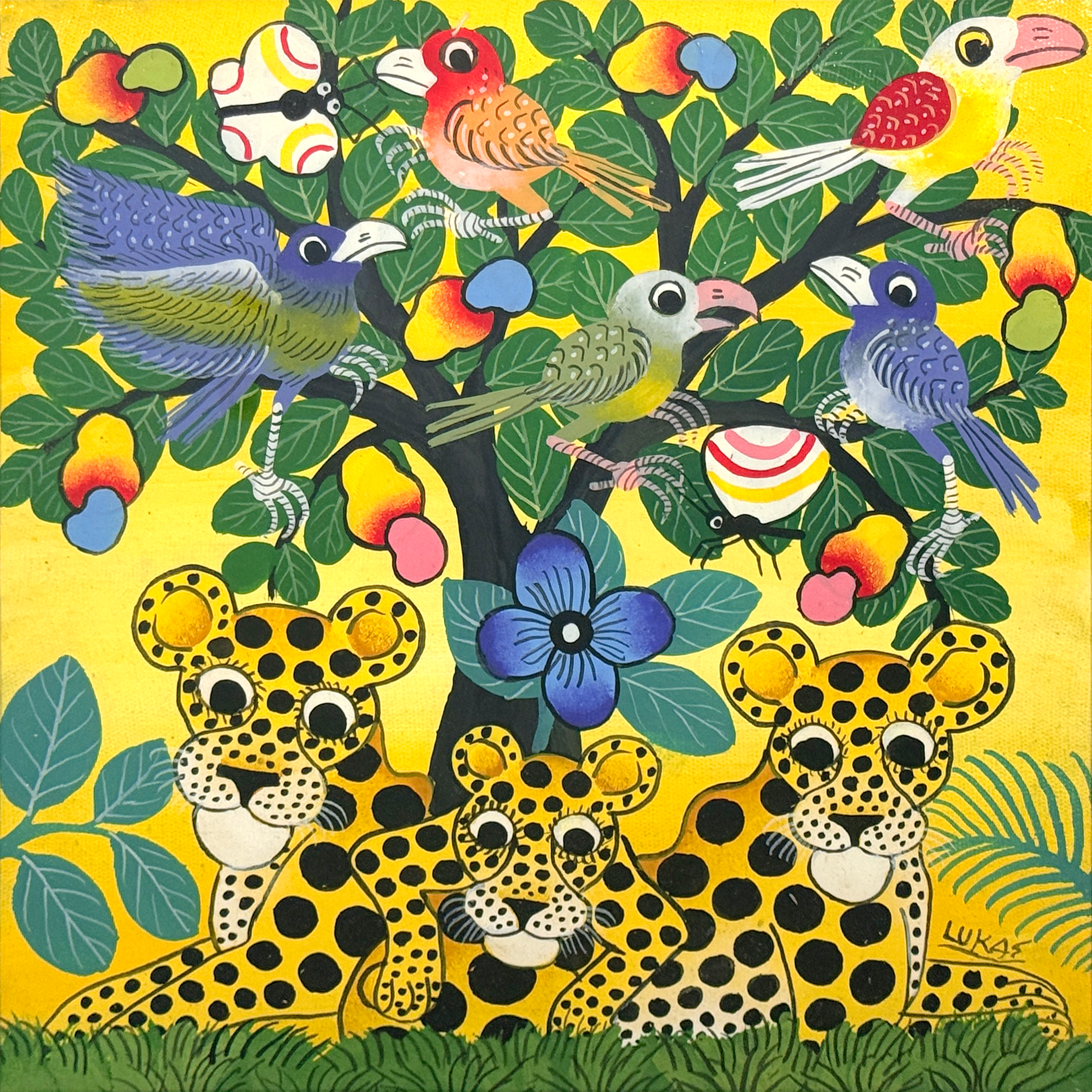 「チーターの家族と鳥と蝶~カシューナッツの樹~イエロー~」