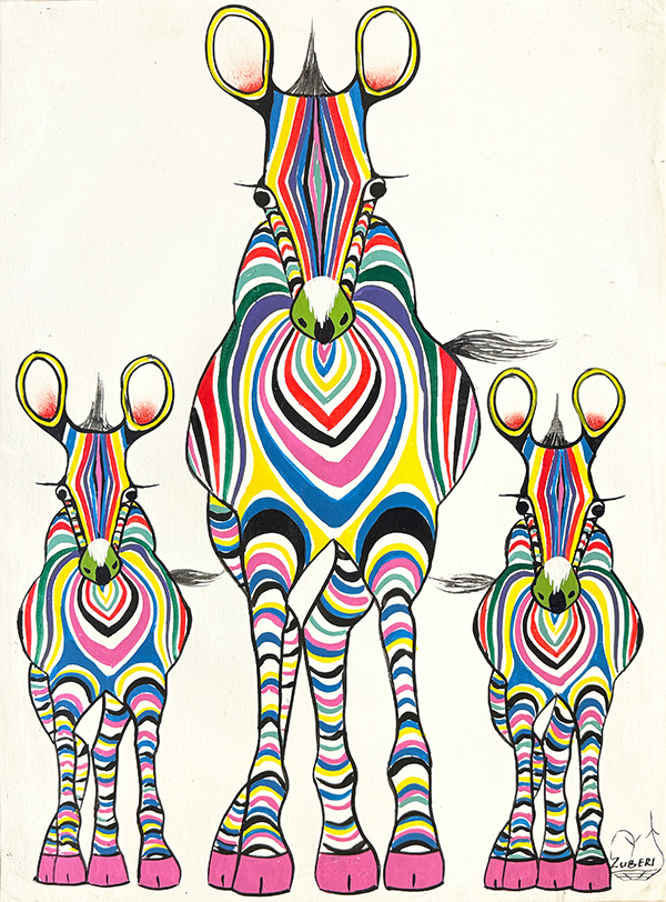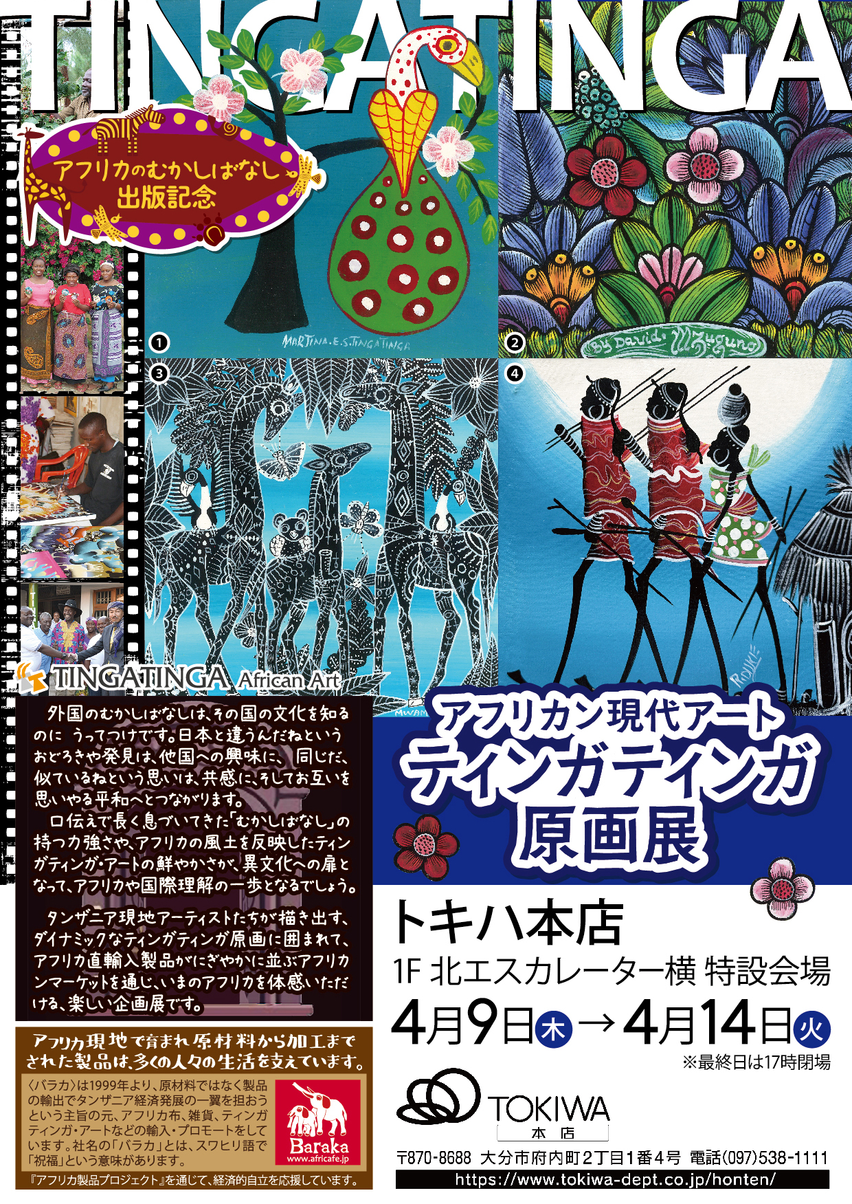 ティンガティンガ・アートとは、1968年にタンザニアにおいて、E.S.ティンガティンガ氏とその弟子たちが、6色のエナメルペンキを用いて、自国の豊かな自然、動物や鳥、人々の暮らしを、色鮮やかに描き出した絵画のスタイル。