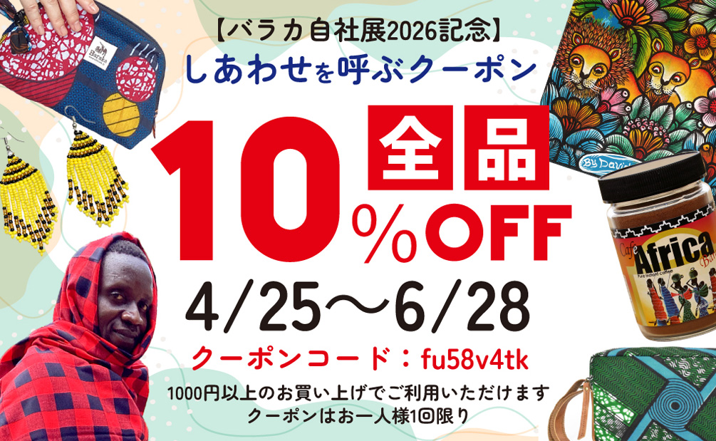 ぜひこのお得な機会に、アフリカフェ@バラカのセレクトショップでお買い物をお楽しみ下さい。