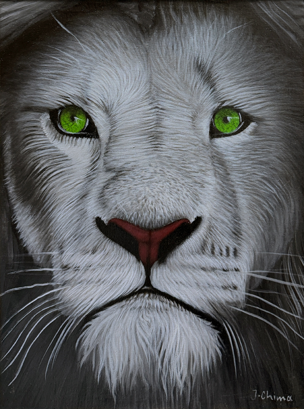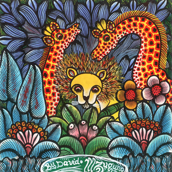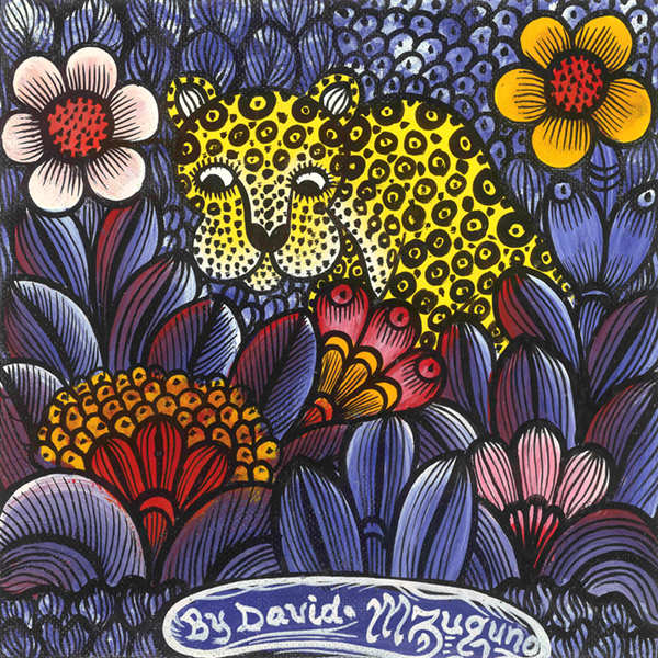 キャンバスいっぱいに、タンザニアの植物(主に出身地のキリマンジャロ地方の植物や花)を描く独特の作風で人気を博したデビッド・ムズグノ氏(1951-2010)の作風を受け継いだ、ムズグノブラザースのうちの一人、長男 ムシャーナ・ムズグノの息子。