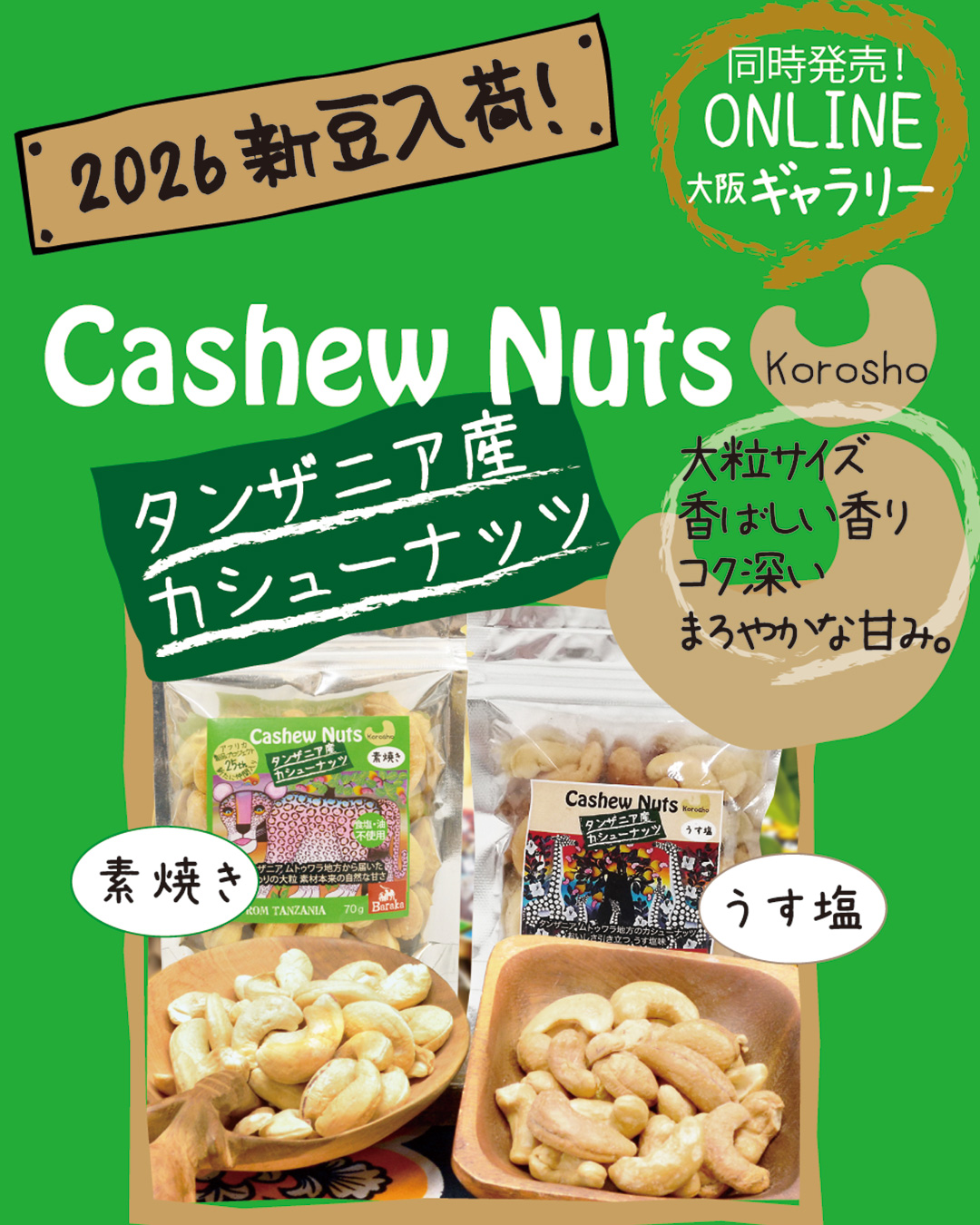 「タンザニア産カシューナッツ」<素焼き><うす塩> 2026新豆入荷しました!