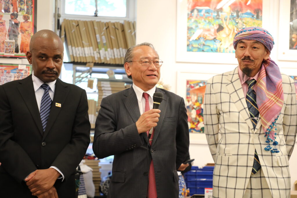 初日4/25の夕方からは、オープニングパーティで、新しい駐日本タンザニア大使 アンダーソン大使と、元在タンザニア日本大使後藤真一氏より、こころあたたまる祝辞をちょうだいしました。